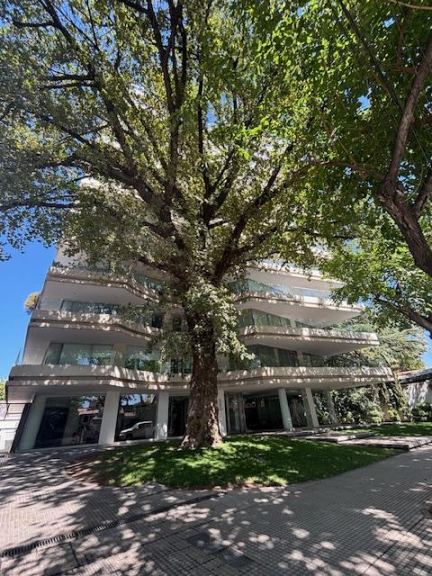 En el prestigioso edificio El Bosque, ubicado en la calle Hipólito Yrigoyen de Ciudad Mendoza, se encuentra este magnífico departamento de categoría en el codiciado barrio Bombal Sur. El edificio se destaca por su diseño vanguardista y su entrada con un hermoso árbol que le brinda un encanto especial.